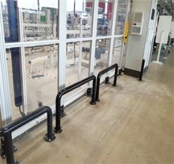 辦公區(qū)中庭玻璃處防撞柱現(xiàn)場安裝施工項(xiàng)目