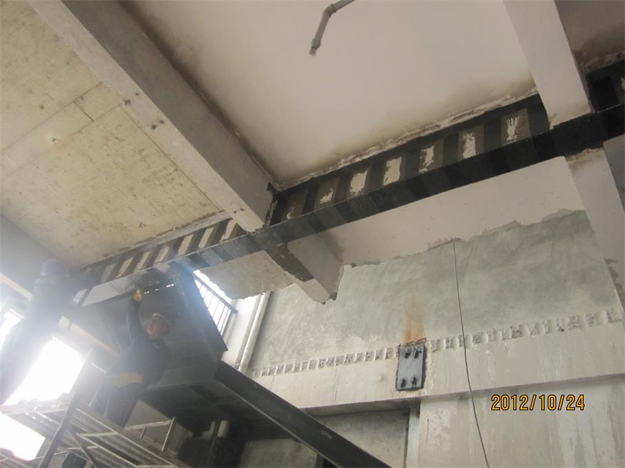 工行樂山分行沙灣支行辦公樓底層框架梁、柱碳纖維加固工程